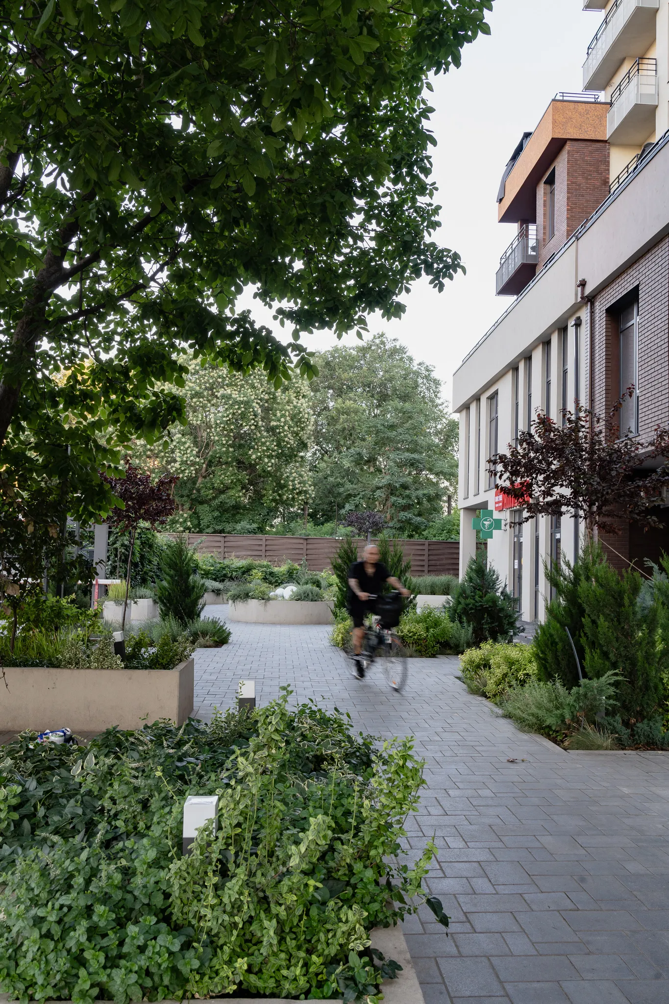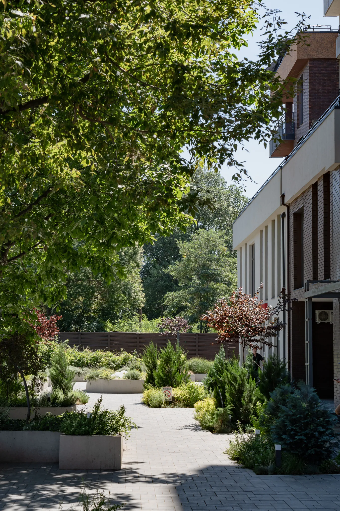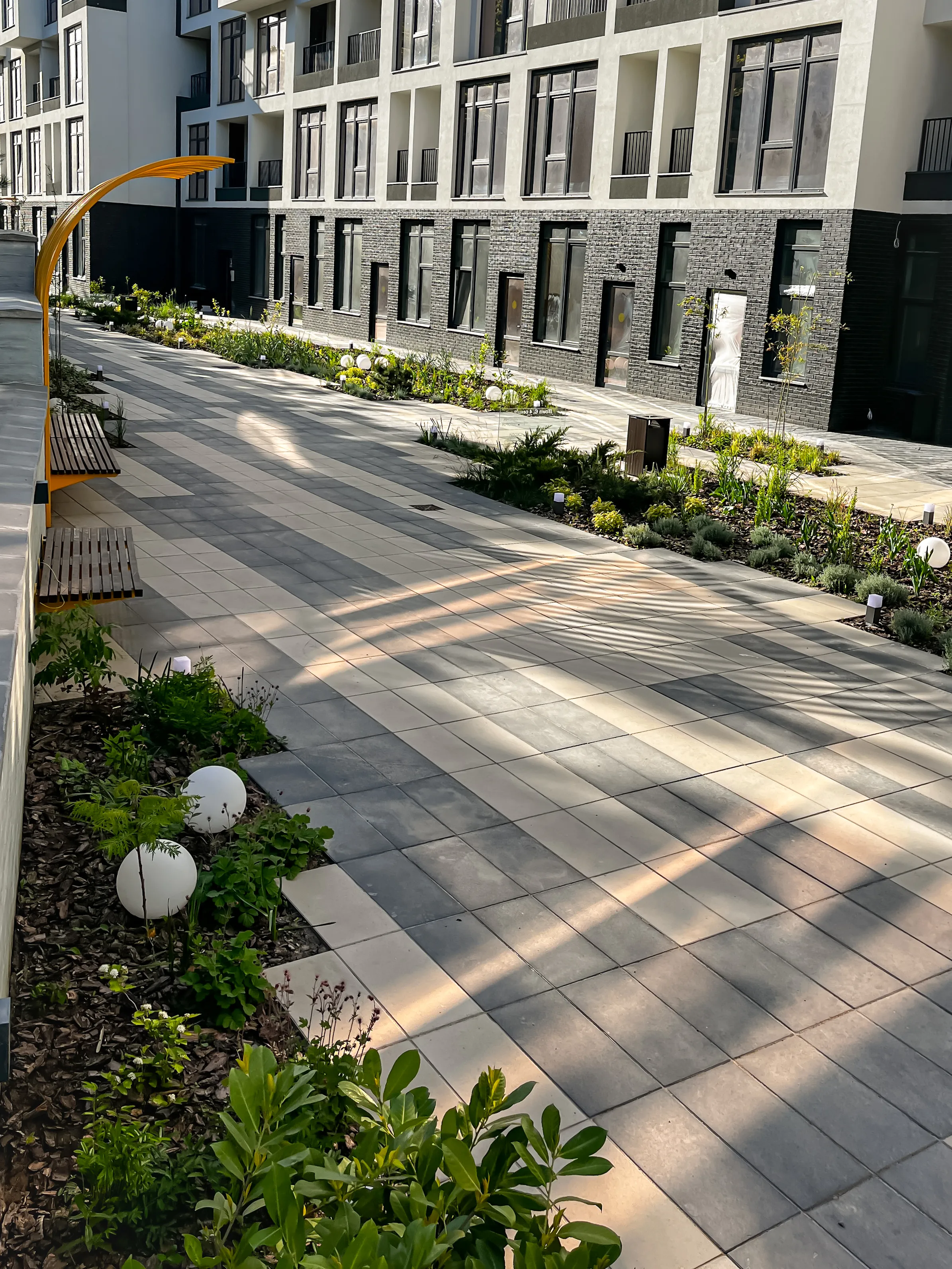 Частий головний біль девелоперських компаній  - є проєктний відділ, але немає міських архітекторів, які продумають і пожежний проїзд, і зонування індивідуальної території, і органічне відділення приватної території від громадської. Або ж є міські архітектори, але немає ландшафтного, який знає точно якими рослинами відділити приватні патіо від громадської зони, бо тут наприклад постійна тінь, вітряна сторона, бігають хатні улюбленці, та і туї рядочком саджати вже якось мувітон. Або ж є ландшафтний, але немає генпланистів, і ніхто не знає, як відводити воду на цій складній ділянці. Або ж немає тих, хто розробляє МАФи і їх конструктив. А сучасне озеленення і обслуговування сада – це взагалі як вища математика. Ще й під кожний вид робіт треба тендерити і шукати підрядників – ким робити мощення, освітлення,перголи, басейни, озелення, інженерні роботи…знайомо?