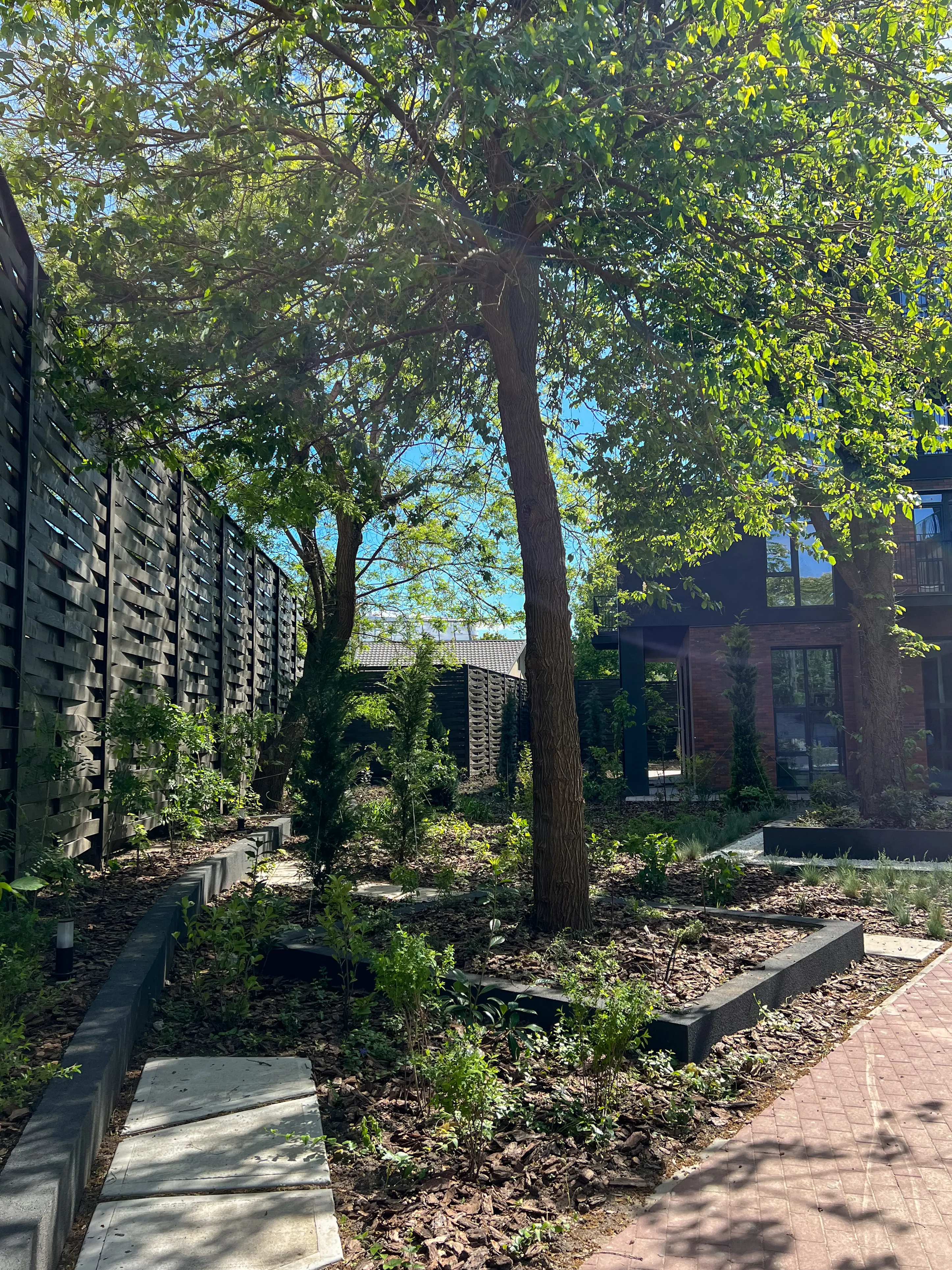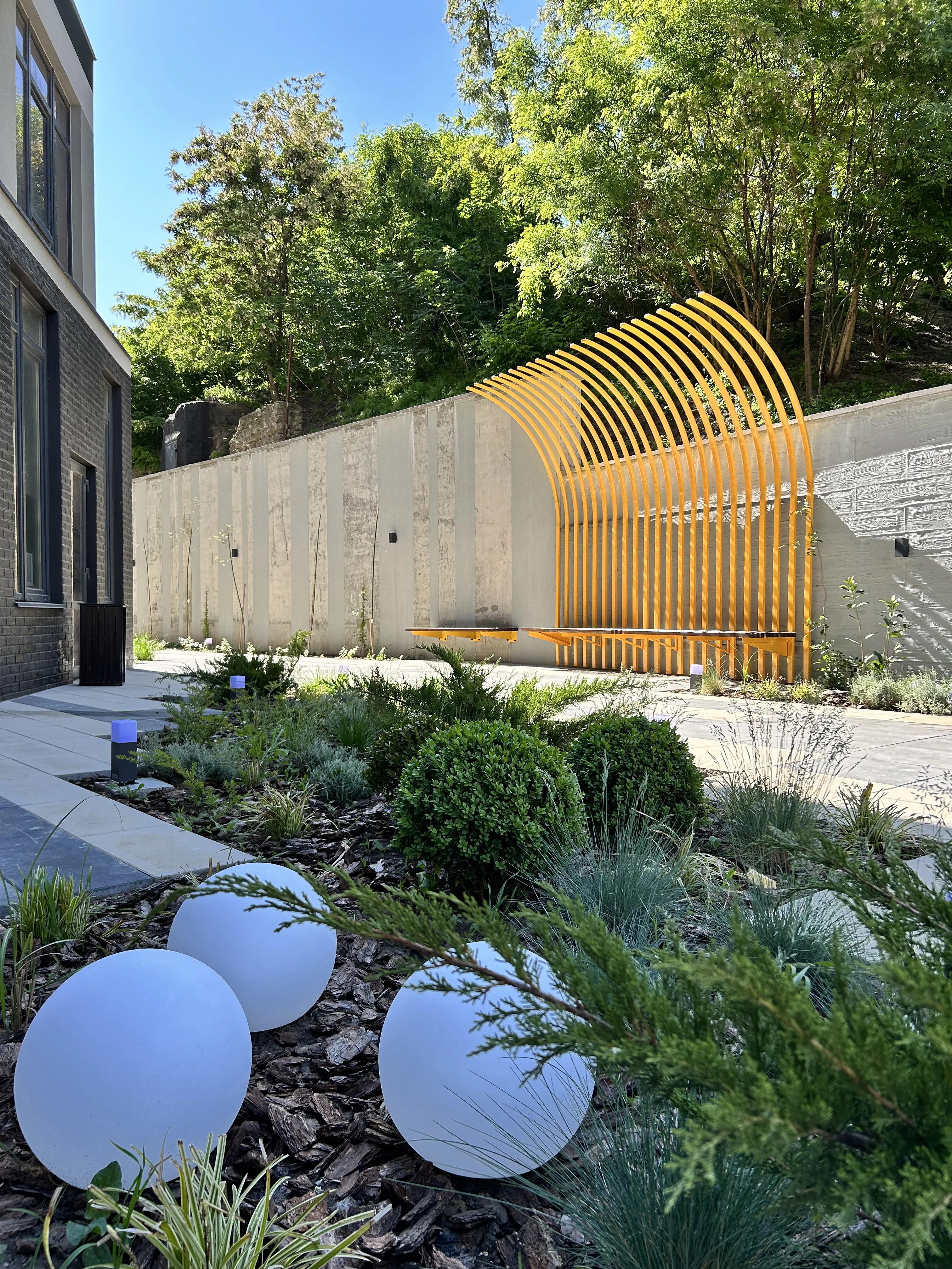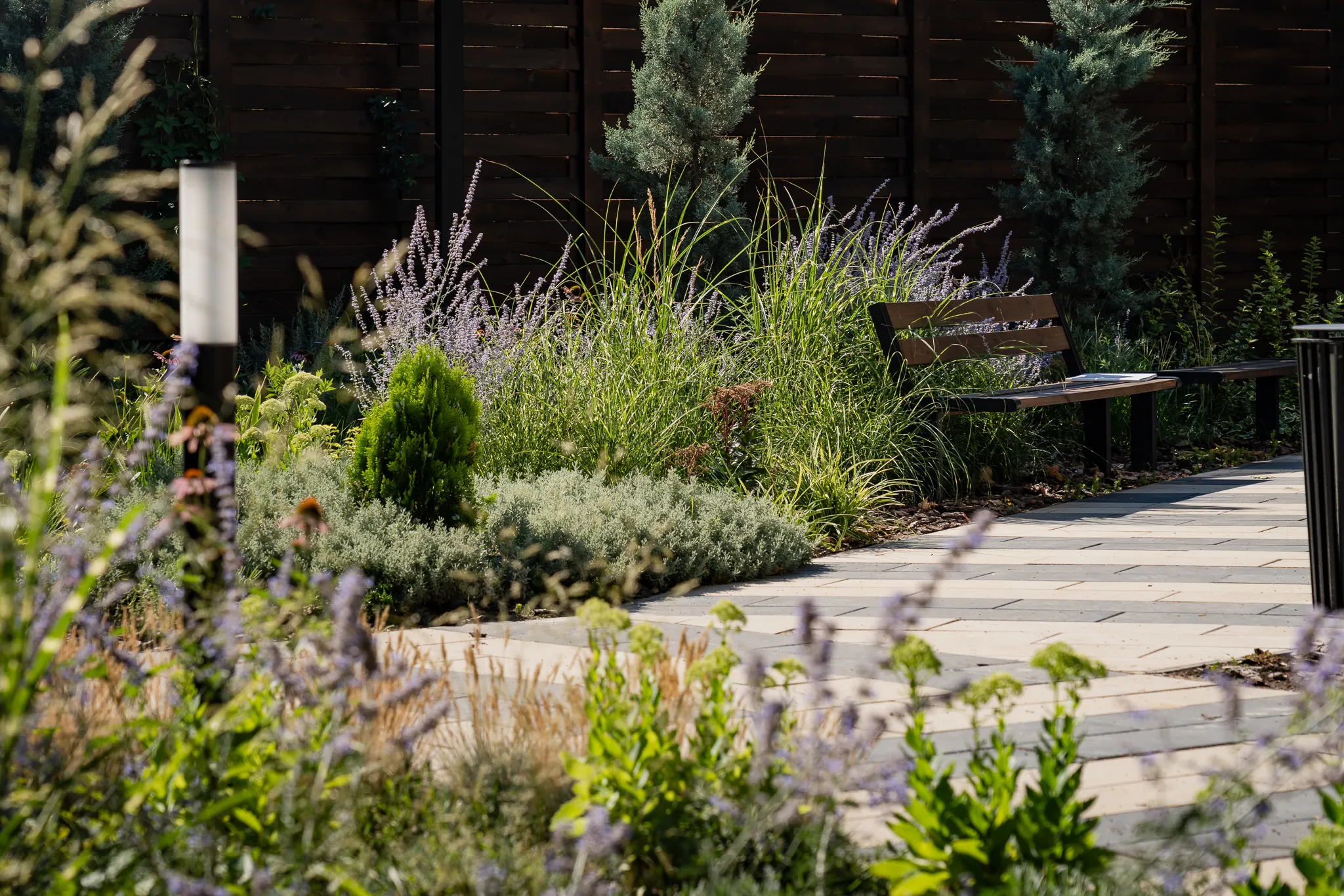 Частий головний біль девелоперських компаній  - є проєктний відділ, але немає міських архітекторів, які продумають і пожежний проїзд, і зонування індивідуальної території, і органічне відділення приватної території від громадської. Або ж є міські архітектори, але немає ландшафтного, який знає точно якими рослинами відділити приватні патіо від громадської зони, бо тут наприклад постійна тінь, вітряна сторона, бігають хатні улюбленці, та і туї рядочком саджати вже якось мувітон. Або ж є ландшафтний, але немає генпланистів, і ніхто не знає, як відводити воду на цій складній ділянці. Або ж немає тих, хто розробляє МАФи і їх конструктив. А сучасне озеленення і обслуговування сада – це взагалі як вища математика. Ще й під кожний вид робіт треба тендерити і шукати підрядників – ким робити мощення, освітлення,перголи, басейни, озелення, інженерні роботи…знайомо?