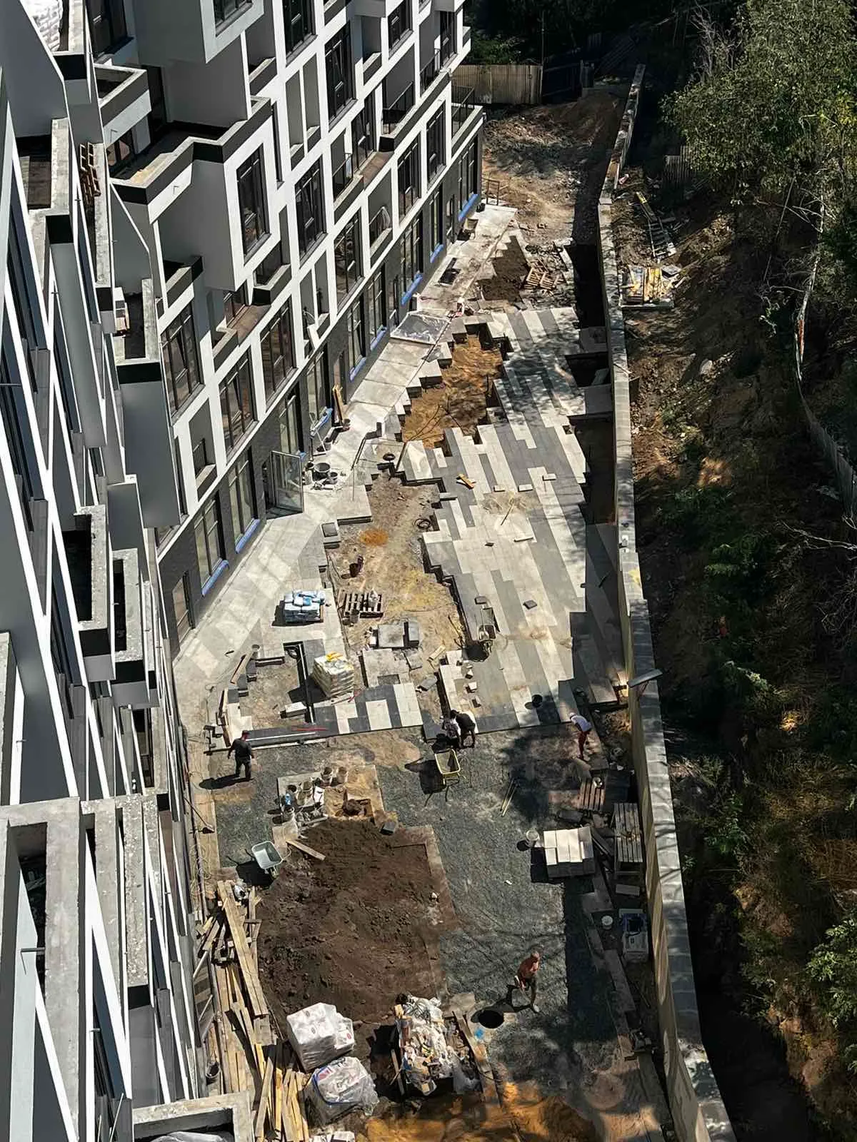 Реалізація благоустрою, мощення, будівництво доріг; заливка бетонних покриттів паркінгів із топінгом; виготовлення і монтаж оствітлення та МАФів (дитячі майданчики, лави, перголи, басейни, фонтани і тп)