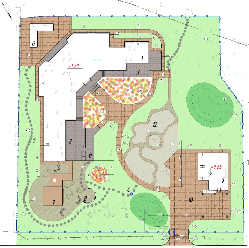 І виходячи з отриманих нами даних, ми вже бачимо чи потрібний дитячий майданчик на території, і для якого віку. Чи потрібна зона для читання з перголою, лавочками, може фонтаном або іншою водоймою. Чи потрібна прогулянкова зона, і що має зустрічатися на шляху: можливо декоративні рослини, які захочеться розглядати, чи скульптури, чи інші арт-композиції. Можливо, в цьому будинку живуть тільки айтішники і все, що їм потрібно – багато затишних місць для роботи на свіжому повітрі: альтанки, шезлонги, гамаки,різноманітні лавки із зарядними станціями. Але зрідка вони все ж таки будуть розминатися, тому ми передбачимо ще й спортивний майданчик чи місце для тенісних столів.  А можливо, тут багато сімей з дітьми, і ми ще й спроєктуємо французькі городики, щоб дітки розвивались споглядаючи природу з батьками.